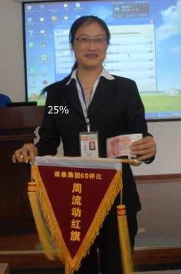 就三月份和四月第(dì)一周檢查的(de)情況,張總分(fèn)別給各車間和部門的6S幹事分發獎(jiǎng)金並授旗鼓勵,並對以往檢查中存在的6S點檢表的勾畫(huà)、人員去向牌、車間標識不規範、消防栓(shuān)等諸多問題,給在會人員解說,就問題的解決落實到相關部(bù)門,就聚烯烴(tīng)事業(yè)部推行6S精細管(guǎn)理,張總給予了幾位車間主任成(chéng)立自主激勵的建議,要(yào)求6S管理小組協助。就在6S執行的(de)過程中存在(zài)的疑點(diǎn)和問題點,應該(gāi)及時實時向6S管理小組反應,最後大家進行了詳細深刻的討論,出謀劃策(cè)商討解決難題。