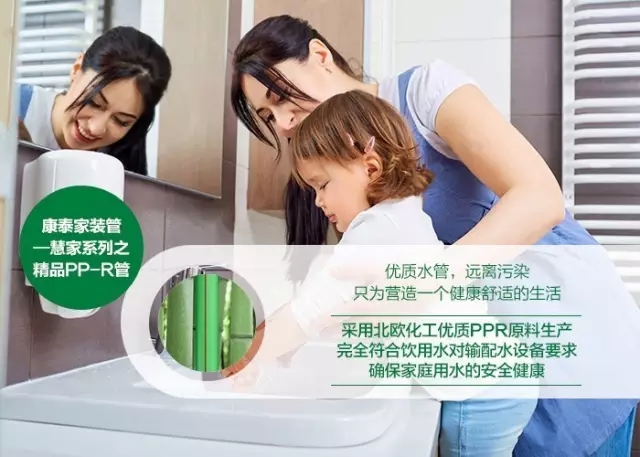 走入尋(xún)常百姓(xìng)家,康泰塑膠以其獨有(yǒu)的科學技術和過硬的產(chǎn)品質量,首推精(jīng)品慧家家裝管道係(xì)列:家裝生態健康管、家裝雙色納米(mǐ)管、家裝紅藍阻燃絕緣電工套管、家裝PVC-U排水管(guǎn)道、家裝五金水暖、薄(báo)壁(bì)不鏽鋼管道、燃氣用不鏽鋼波紋軟管、家裝PE-RT地熱(rè)采暖管道八產品係列,肩負起為每個家庭提(tí)供安全、環保建材的使命,打造生態家裝(zhuāng)一站式整體解決方案(àn),為消費者營造(zào)完美舒適的幸福家。