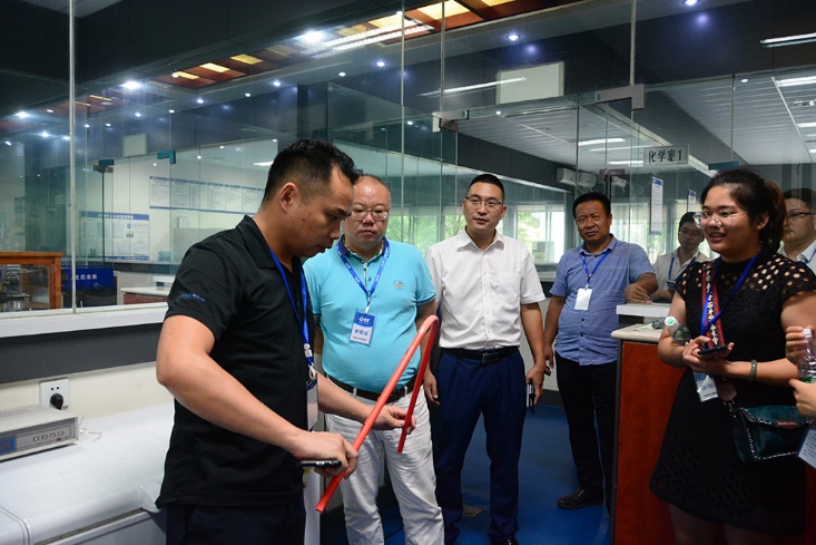 座談前,零售家裝事業部總經理兼不鏽鋼事業部(bù)副總經理趙謙(qiān),不鏽鋼事業部生廠部長蔣斌,零售家裝事業(yè)部經理李軍陪同四川省室內(nèi)裝飾協會領導到(dào)廠區進行了參觀。在公(gōng)司領導(dǎo)陪同下,四川省(shěng)室內裝飾協會領導先後參觀了線管車間(jiān)、管件車間、管件庫(kù)房和聚烯(xī)烴車間、質量中心實(shí)驗室。在質量中(zhōng)心實驗員(yuán)的操作下,還現場演(yǎn)示了康(kāng)泰紅藍線管彎折(shé)試驗。康泰紅藍線管優良的質量和抗壓性贏得了參觀嘉賓的一致好評。