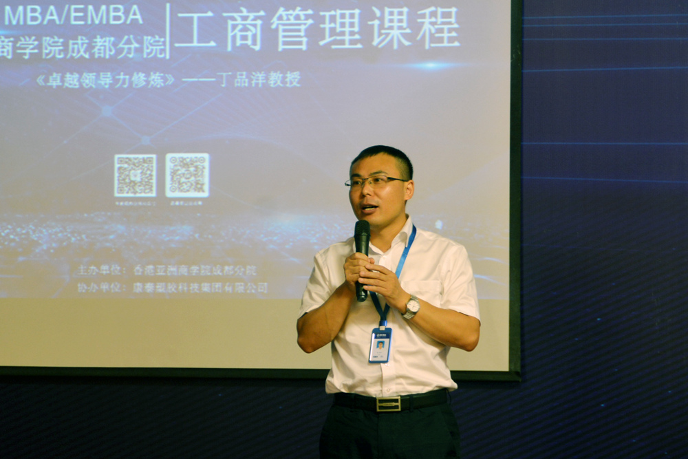 7月19日,康泰塑膠科技集團有(yǒu)限公司聯合香港亞洲(zhōu)商(shāng)學院MBA成(chéng)都分院在康泰集團總部(bù)五樓多功能廳舉行了為期一天的《卓越領導力修煉》專題培訓會議。集團董事長兼總裁林雲青(qīng)、副總裁鄭光鏵、張文霖,以及集團、成都子公司(sī)中高層團隊,亞商學院MBA學員等共計100人參加了(le)培訓。香港亞(yà)洲商學院(簡稱亞商學院)教授丁品洋(yáng)授課。