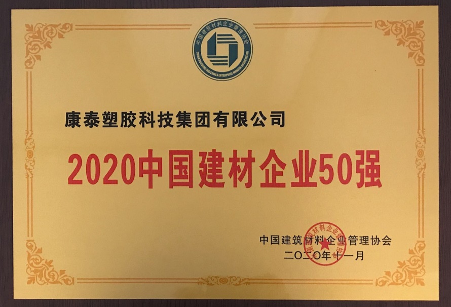 日前(qián),由(yóu)中國建築材(cái)料企業管理協會和中國建築材料工業規劃研究院主辦的(de)“2020中國建材企業發展論壇”在京舉行(háng)。會議邀請相關部委負責人、行業專家學者 和企業家聚焦行業當(dāng)前熱點難點(diǎn),講解闡述國(guó)家最新產業政策及行業狀況與未來趨勢。會議還同時發布(bù)了相關榜單。康泰集團憑(píng)借在行業內的突出表現,榮(róng)獲2020 “中國民營建(jiàn)材企(qǐ)業20強”、 “中國建材企業50強” 、“中國管件管材企業10強”三項(xiàng)榮譽(yù)。