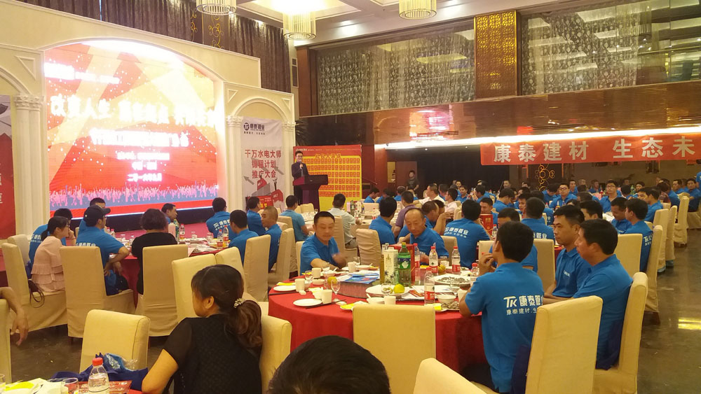 “‘改變人生、贏在起點、共用共享’浙江康泰千萬水工錦程計劃大型推廣會” 9月(yuè)23日重回主場浙江(jiāng)湖(hú)州。這(zhè)是繼江(jiāng)西上饒之(zhī)後的第三場會議。浙江基地總經理潘明正、集團市場總監鄭光鏵、集團營銷顧問王楨、浙江基地家裝部總監王兵、湖州物流中心總經理管俊華等出席會議。湖州區域水電工、部(bù)分重點(diǎn)經銷商以及浙江康泰銷售團隊全體人員(yuán)參加了(le)本次會議。