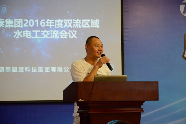 為提高康泰品(pǐn)牌知名度,推(tuī)廣康泰家裝產品、增(zēng)強(qiáng)康泰市場競爭(zhēng)能力,助力康轉型(xíng)升級,實(shí)現康泰成功布局三四級終端市場的目的。8月1日上午,“康泰集團2016年雙流區域水電工交流會議”在集團(tuán)總部五樓會議室召開。康泰集團(tuán)市場總監鄭光鏵、銷售總監何(hé)朝暉、質(zhì)量總監徐(xú)水平(píng)、技術總監張雙全等公司領導出席會議。雙(shuāng)流區域水電工、重點經銷商(shāng)等(děng)共計(jì)60餘人應邀參加會議。
