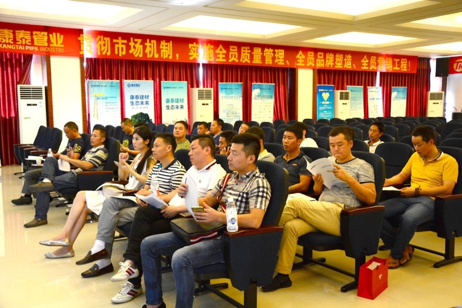 培訓在集團五樓多功能室舉行,本次培訓共包含康(kāng)泰(tài)新產品講解、檢查井安裝知識、型材產品知識三(sān)部分內容,旨在通過康泰新產品知識講解,讓客戶及員(yuán)工了解並掌握(wò)新產品(pǐn)賣點(diǎn),提(tí)升新(xīn)產品推廣力度。康(kāng)泰集團技術研發中心(xīn)副總監周祖(zǔ)明和(hé)產品經理王成城,市場中心新(xīn)產品推廣經理趙謙,型材事業部(bù)蘇顯根對(duì)本次培訓的具(jù)體(tǐ)內容進(jìn)行了講解。