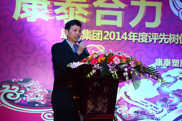 大會最後,在全體(tǐ)員工熱烈(liè)的掌聲中,集團董事長兼總裁林雲青發表了(le)重要講話。林總裁首(shǒu)先對獲獎的單位和個(gè)人表示了祝賀,對全體康泰員工在2014年(nián)付出的辛勤努力表示了感謝,並期(qī)望所有獲獎單位和個人在工作中的模範(fàn)帶(dài)頭作用,再接再厲,頑(wán)強拚(pīn)搏,做出更加優異的成績。林總裁表示,2014年已經過去,在中國經濟增長放緩,房地產市場低迷,塑料管道行業加劇大洗(xǐ)牌的(de)影響下,91免费网站全體康泰人不斷(duàn)探索,不斷拚搏,全(quán)力以赴,通過轉變推廣營銷模式和營銷管理理念,全麵完成了預定的目標。這是公(gōng)司全體員工共(gòng)同(tóng)努力才取得的結果,我代表公司(sī)股東、董事及管理團隊衷心的感謝你們,希(xī)望全體康泰人在新的一年裏,繼續保持(chí)踏實勤儉、務實高效的(de)作風,在新的一年(nián)裏取得更(gèng)大成功。