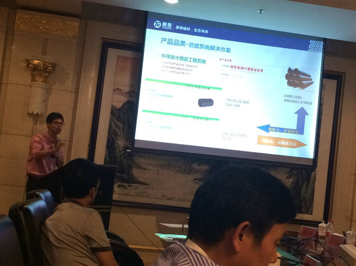 隨後由遼寧(níng)康泰總經(jīng)理張文霖作《新產品規劃》報告,張總(zǒng)係統介紹了MPE、MPVE®、PE同層排水、特(tè)殊單立管、檢查井、高層排水HRS等新產品的規劃、實施進展和功能賣點,並對產品、材料(liào)、技術與營銷的結合和(hé)市場定位作出闡述,明確今後每年將保(bǎo)持1-2款新產(chǎn)品作為康泰獨有領先的技術支持,不(bú)斷(duàn)打造、提升康泰的技術研發(fā)能力,充分實現(xiàn)技術、創新推動發(fā)展,打造產品(pǐn)對市場、營銷的支撐力(lì)。