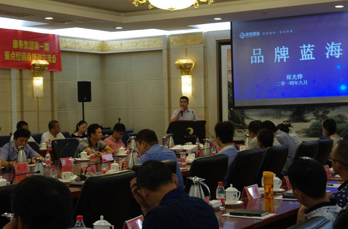 接著由集團(tuán)總裁特助兼品牌總(zǒng)監鄭光(guāng)鏵作《品牌藍海》報(bào)告,鄭總係統的從行業整體形勢(shì)、集團頂層設計、品牌塑造、蔡總(zǒng)的(de)成功經營模式與(yǔ)係統(tǒng)思維、新經銷商思維、企業與經銷商專業分工係(xì)統闡述匯報,最終聚焦在品(pǐn)牌藍海為新的發展動力和引擎。鄭總(zǒng)在2個小時的匯報中強調康(kāng)泰集團一定要建立在內部強大基礎上的全麵品牌(pái)塑造戰略與規劃,以立(lì)體(tǐ)、多元素(sù)的品牌塑(sù)造,明確康泰集團就是要成長為生態建(jiàn)材行(háng)業領導者品牌,做不了第一、做(zuò)唯一,逐步跳出價格戰、全麵向(xiàng)品牌營銷、價值營銷的藍海突(tū)圍。要求(qiú)經銷商要清晰定位、打(dǎ)開思維、轉變思路,樹立(lì)信念、強大內心,發揮團隊、練好基本功,緊跟康(kāng)泰的發展,大(dà)洗牌期間健康的(de)活著,擴大市場份額,蓄勢待發,大洗牌結束,再次發展騰飛(fēi)。共同努力實現康泰集團全麵品牌化(huà)、規範化、規模化的戰(zhàn)略目標,發展共贏。