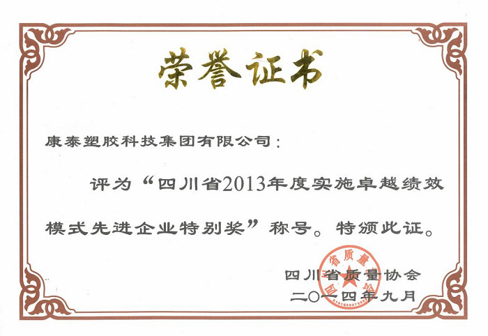 榮獲四川省2013年(nián)度實施卓越績效模(mó)式先進企業(yè)獎(jiǎng)、特別獎