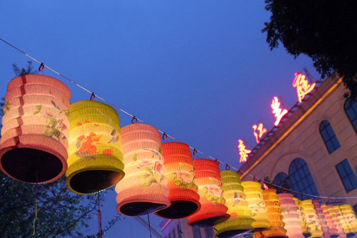 燈謎活動結束後,漂亮(liàng)的燈籠亮起,把泰江蘭庭裝扮得十分美麗