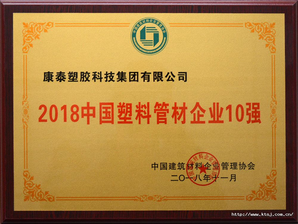 康泰塑膠(jiāo)、康泰管業榮膺“2018中國塑料管材企業10強(qiáng)