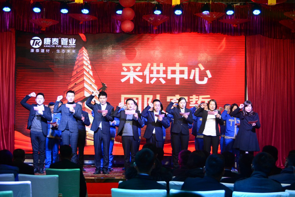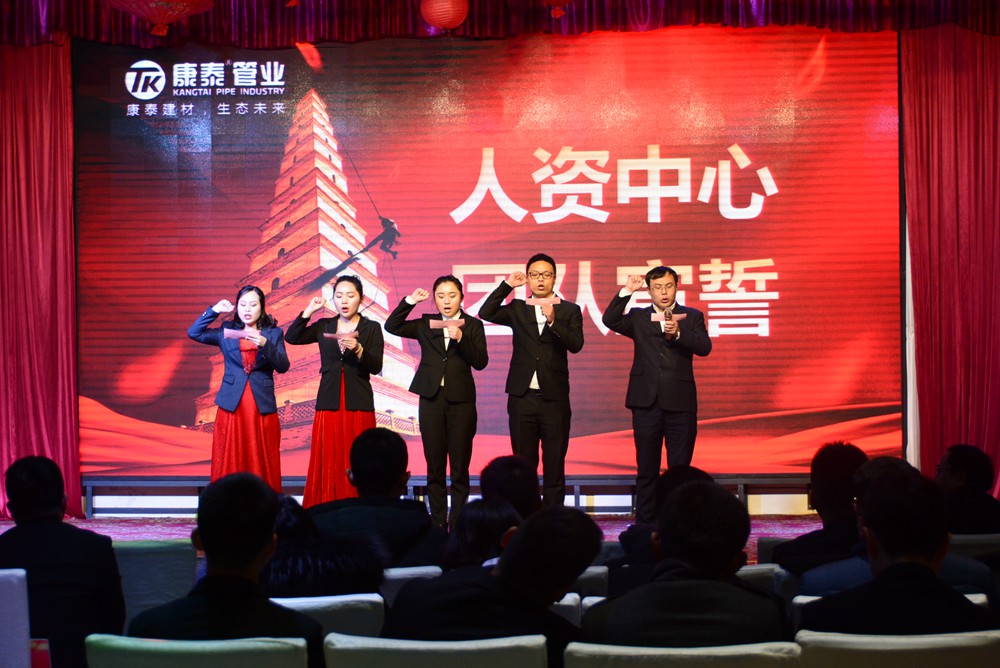 13時許,會議在雄(xióng)壯嘹亮(liàng)的《國(guó)歌(gē)》和《康(kāng)泰(tài)之歌》中正式啟幕。大會共(gòng)有五項議程分別是,對2018年的工作(zuò)總結(jié)暨2019年(nián)度經營規劃、表彰2018年度先進個人和集體、舉行迎春文藝匯演、母公司(sī)各中心宣誓、聽取董事長對(duì)2019年的總體(tǐ)規劃和展望。