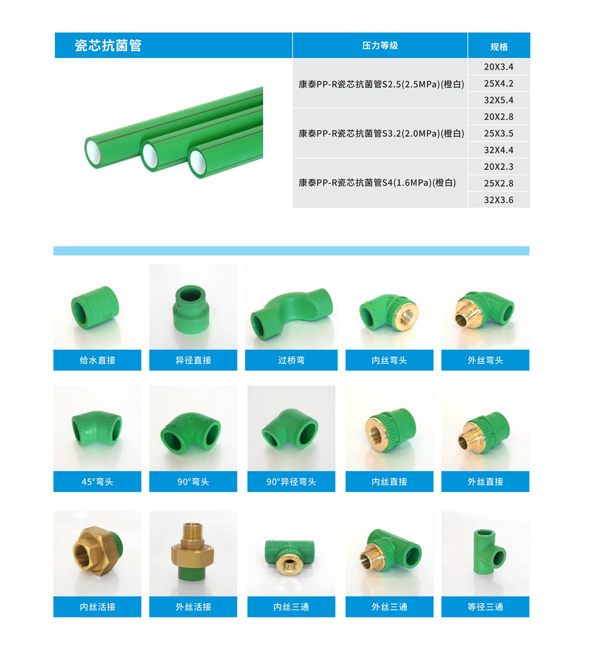 康泰PPR瓷(cí)芯抗菌管道係列: