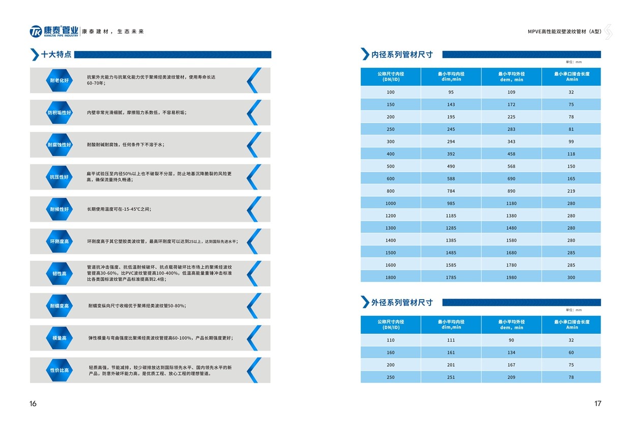本站關鍵詞:康泰 康泰塑膠康泰管業MPVEMPVE波紋管MPVE生產廠家MPVE批發MPVE代理MPVE雙(shuāng)壁波紋(wén)管MPVE哪裏有(yǒu)賣/a>MPVE共混雙壁波紋管